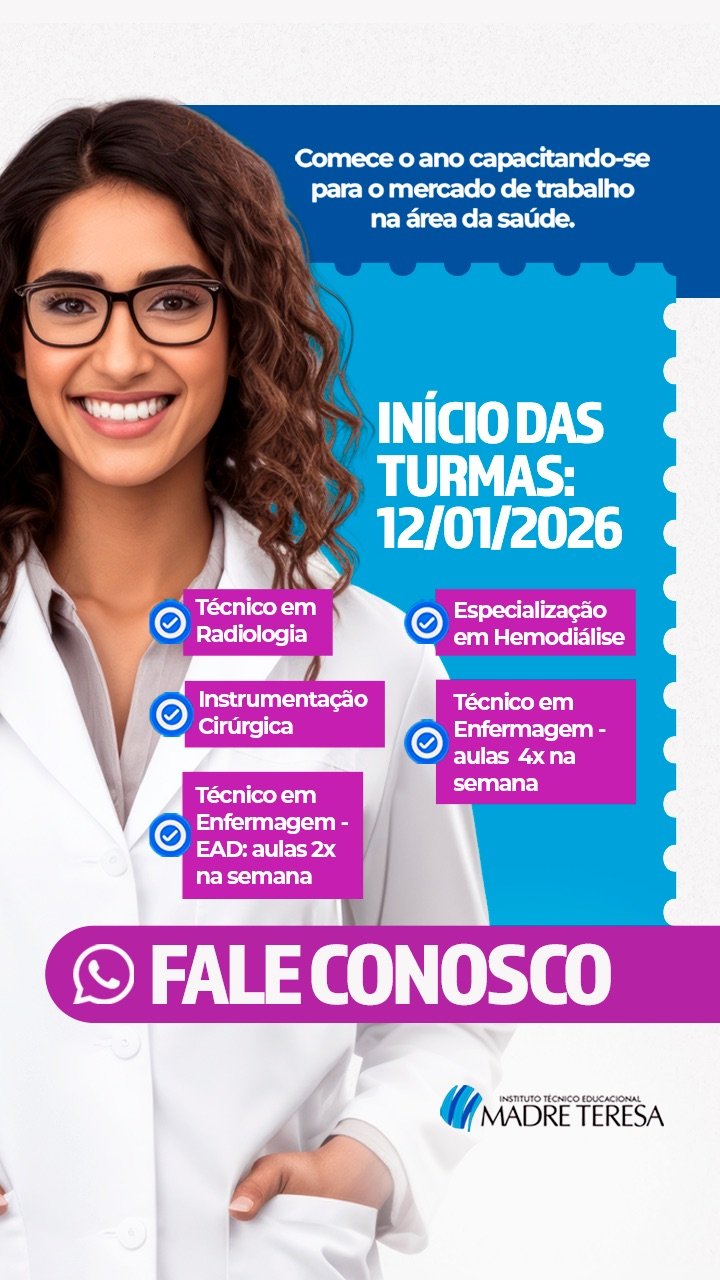 O Instituto Madre Teresa é referência em educação técnica, oferecendo uma formação de qualidade que prepara seus alunos para os desafios do mercado de trabalho. Com anos de experiência no ensino, nossa instituição se destaca pela seriedade, compromisso, dedicação em proporcionar um ambiente de aprendizado inovador, sempre alinhado às exigências e tendências das diferentes áreas de atuação.